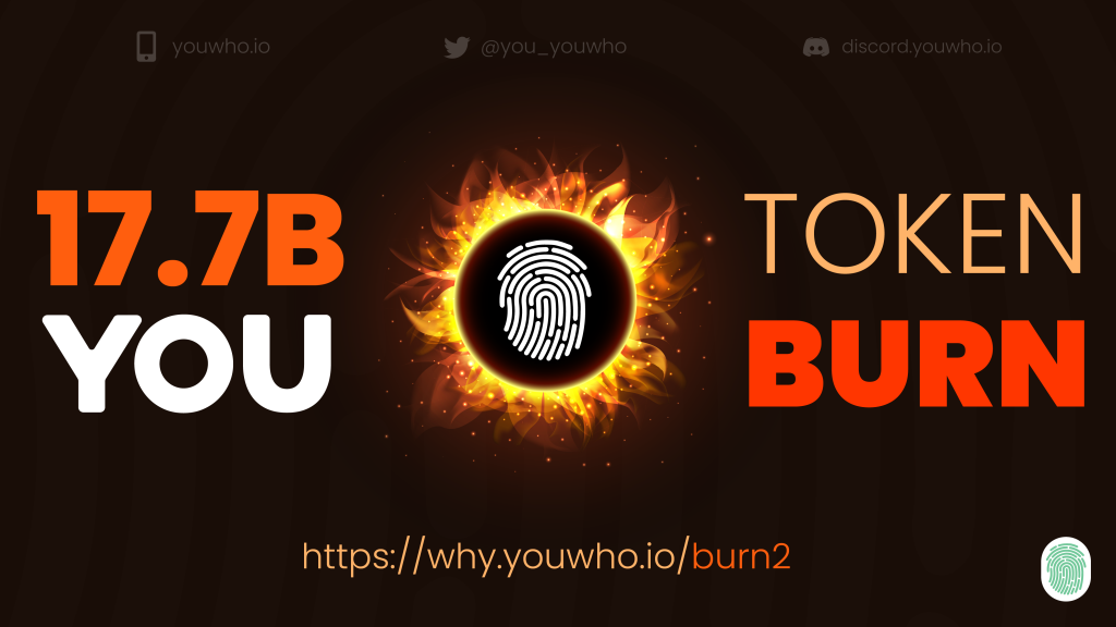 We continue our quest for transparency as we forge ahead with building the YOUWHO ecosystem and community. The YOUWHO foundation has taken the initiative to burn 17.7B YOU tokens, valued at $4.5M USD at the time of writing, which were originally minted as part of the Token Generation Event. These tokens were to be used as part of the development of the ecosystem, along with distribution as rewards and incentives to the community as per our tokenomics, more info here: YOU Tokenomics